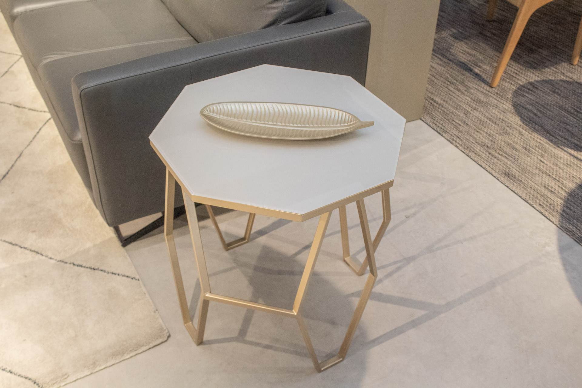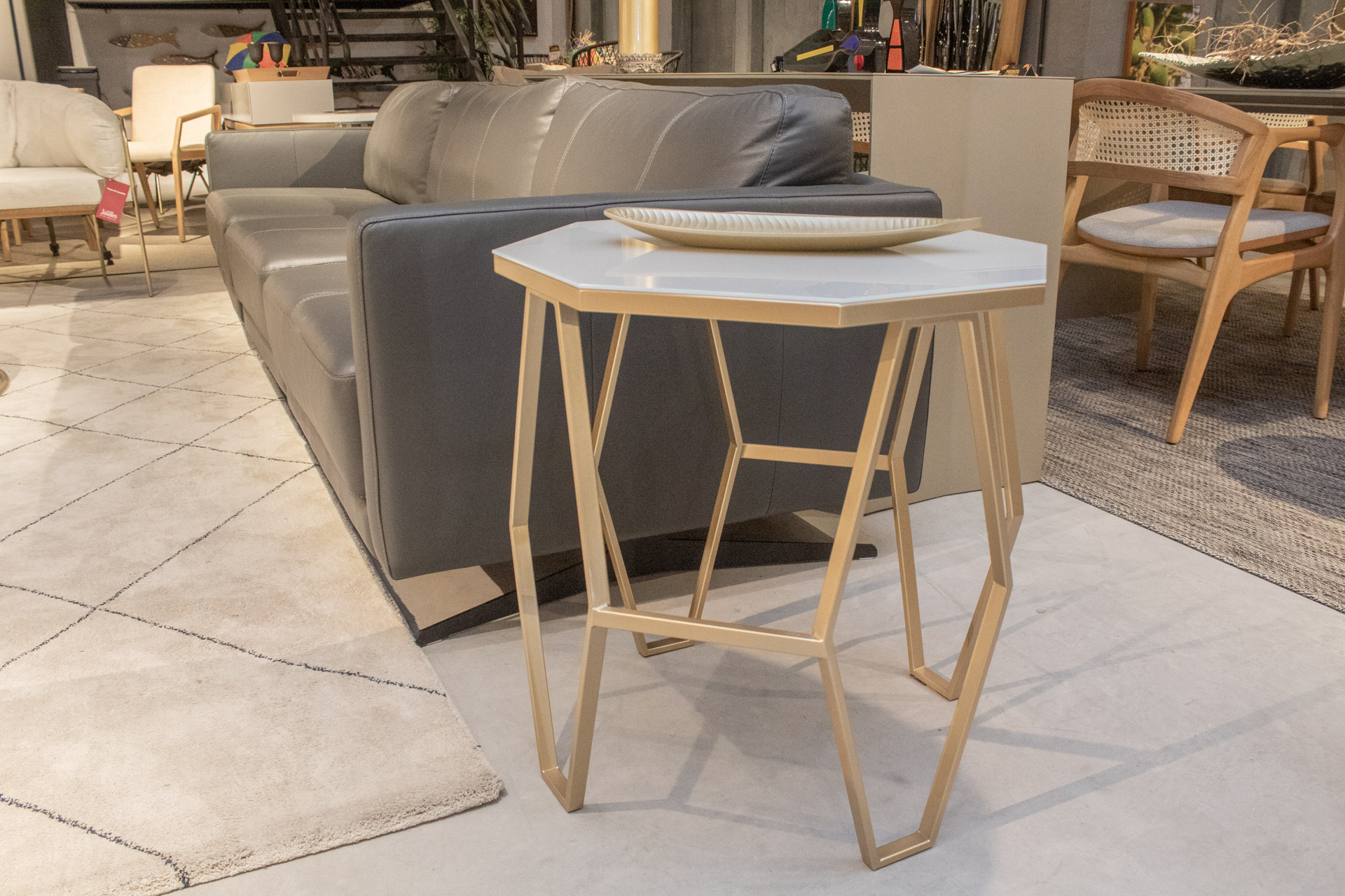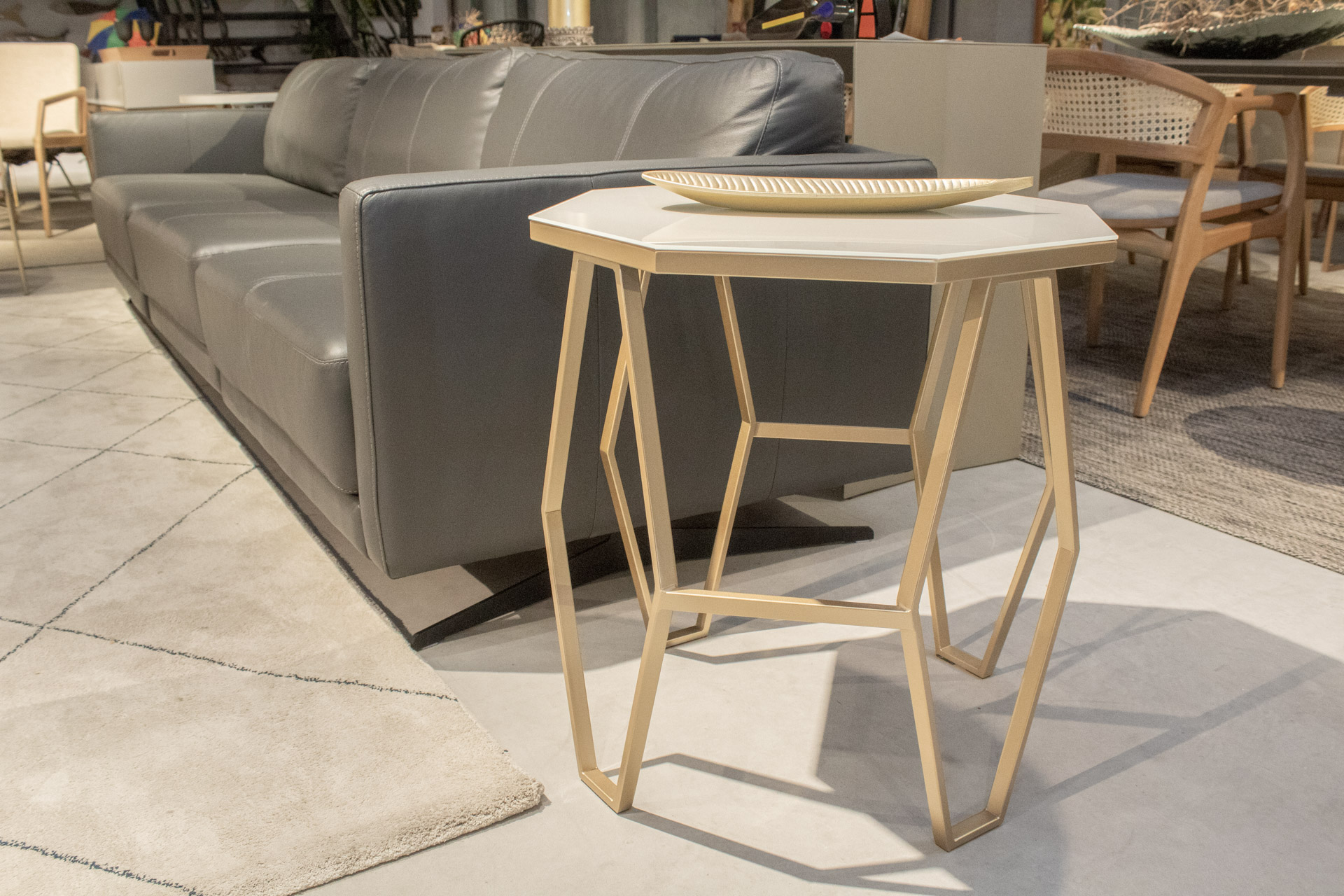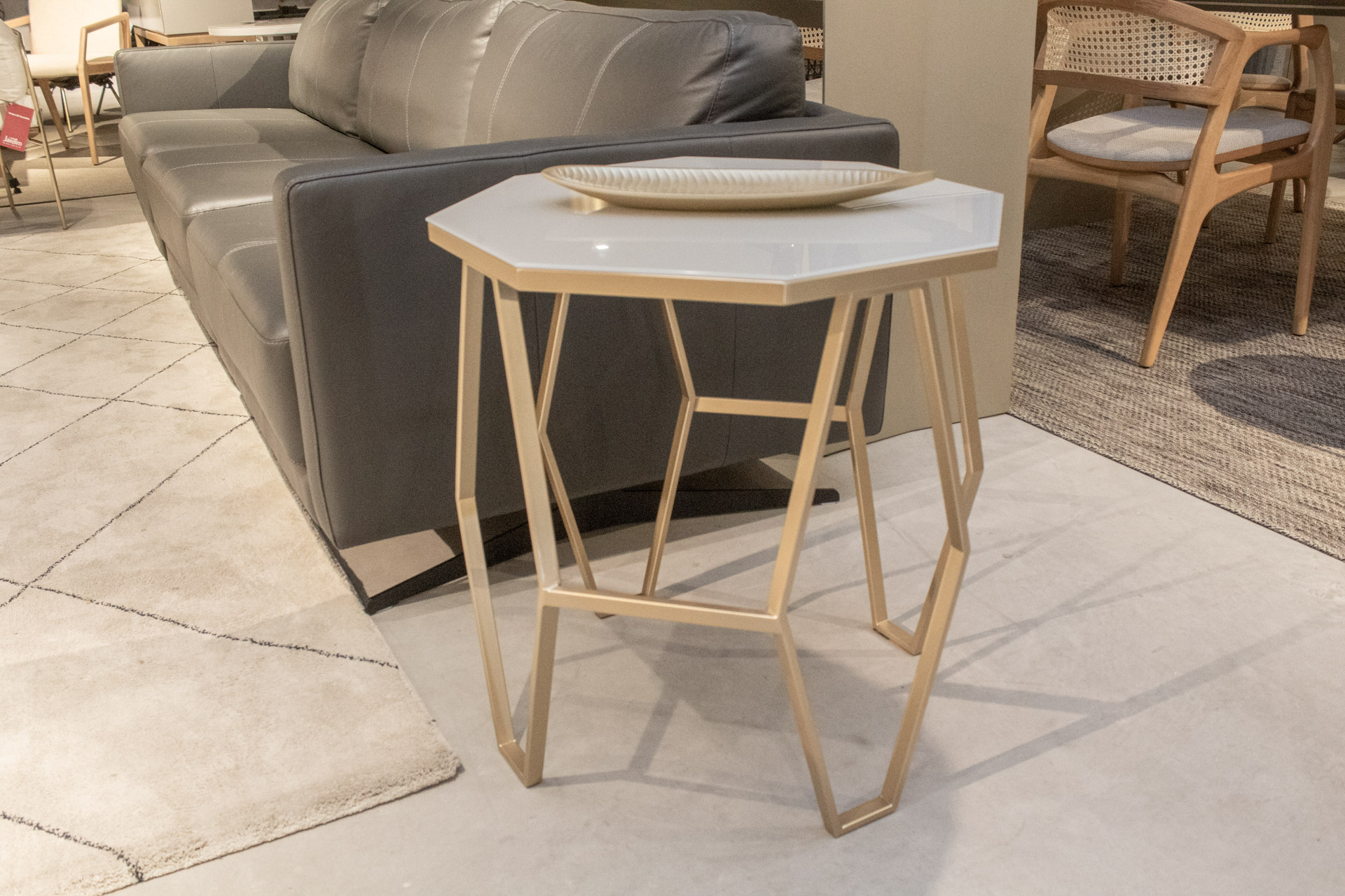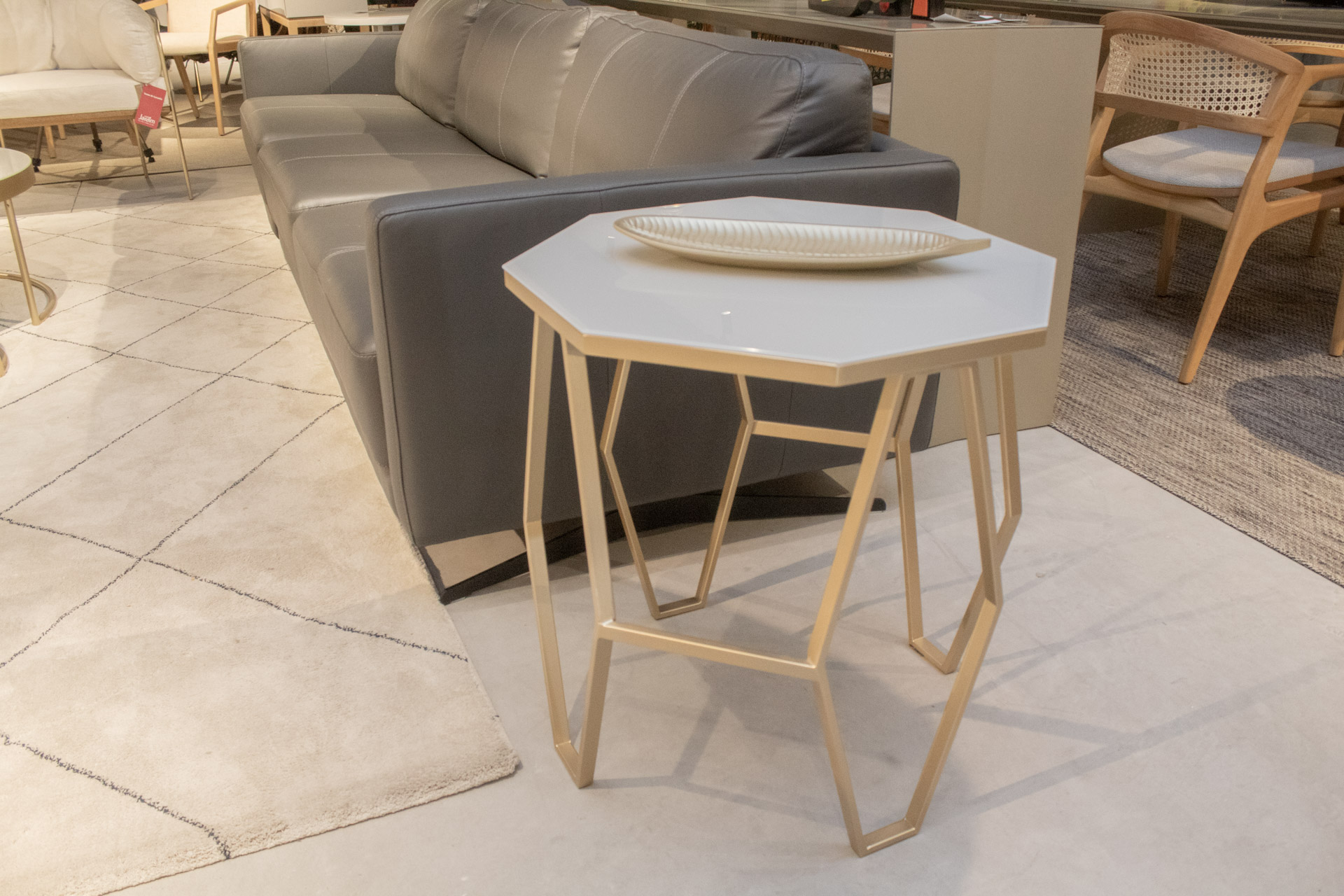 Mesa lateral em aço inox.